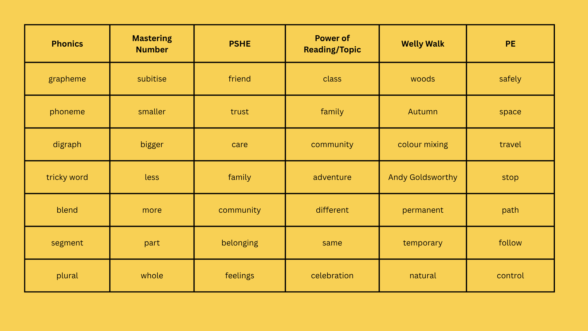 Take a look at the learning planned...
