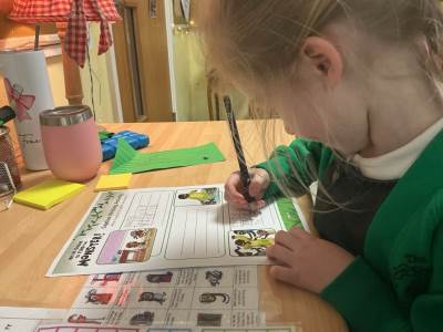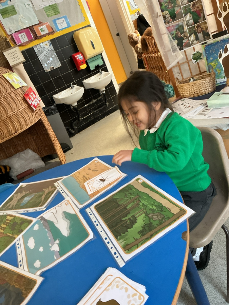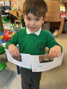 We had a fantastic term going on real and imaginary journeys through our focus text "We're going on a Monster Hunt." We looked at and made our own maps, and found out about different habitats. We explored seasonal changes on our welly walks, and created art using natural materials. In Maths, we have been consolidating our understanding of composition of numbers to 5, and playing games to support our understanding. Our confidence with early reading and writing skills is really improving and we are so proud of what we can do now!